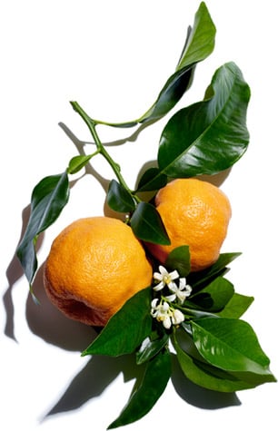 Petitgrain, the essential oil extracted from the bitter orange, is traditionally recognised for its calming and cleansing properties. Soft and soothing, organic orange flower water is traditionally used in skin care for the sensitive eye area. Orange blossom wax is traditionally valued for its protective and filmogenic properties.