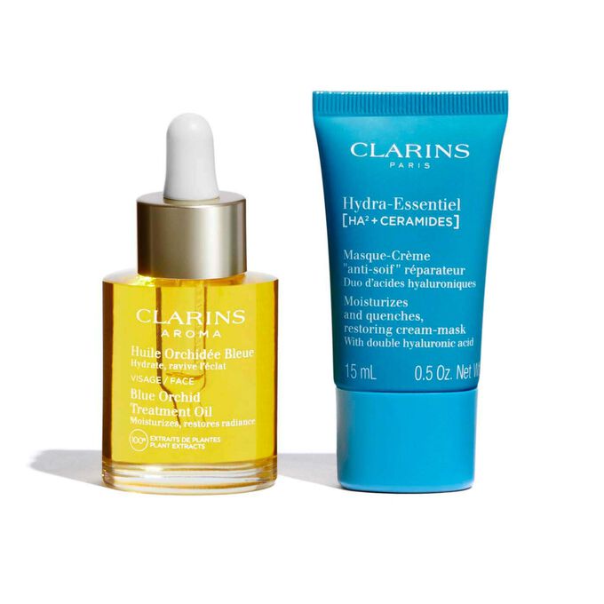 مجموعة تجميل من كلارنس تضم تشكيلة مختارة من منتجات العناية بالبشرة والجمال، لتنظيف البشرة، ترطيبها، تغذيتها، ومنحها لمسة من الإشراق في روتينك اليومي.