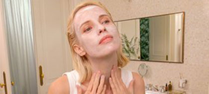 2. ضعيه على وجه وعنق نظيفين. ابدئي بوضعه على الجبهة ثم حول العينين.