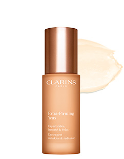 Except for serum dedicated to eyes, it's not recommended to apply it around the eye contour, as the skin around the undereyes is extremely thin and delicate. Clarins recommends applying a tailored undereye cream before following up with a serum and day cream + SPF.